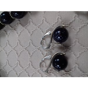 Лаконичные серьги на швензах из серебра 925 пробы с бусинами синего авантюрина